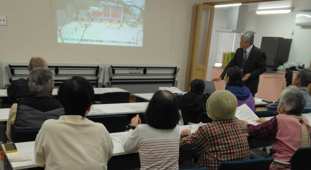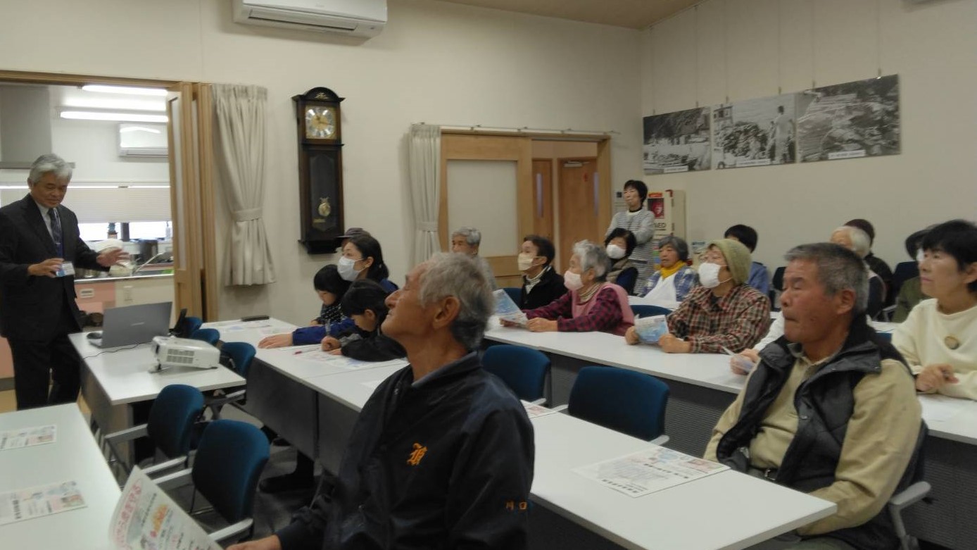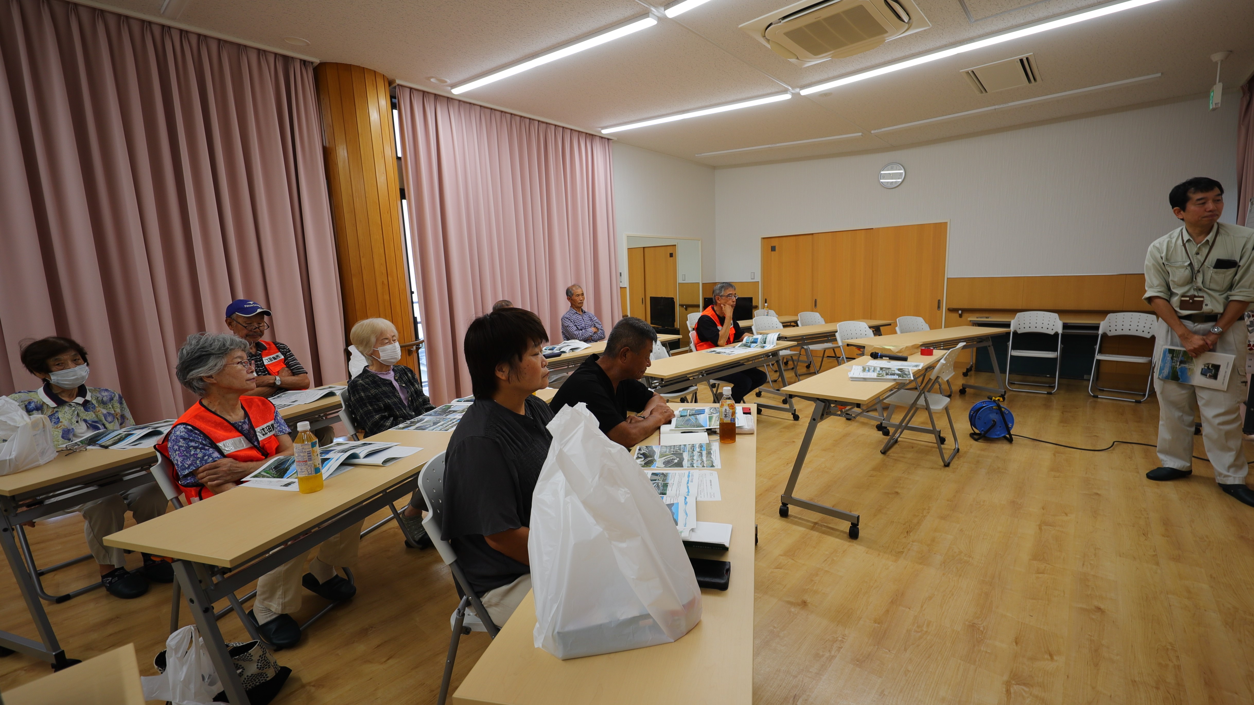 研修会では,県水道広域連合企業団から講師を招き、地域の水道配管と災害時給水について、また、地域の過去の災害や、避難場所、能登半島地震や、今後の気象、台風などについて映像と講話により理解を深めました。