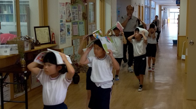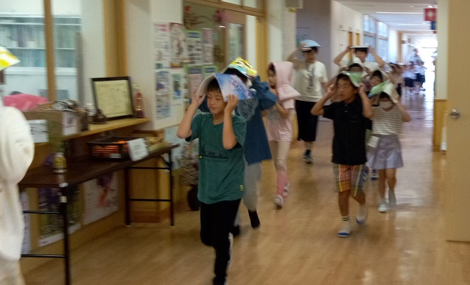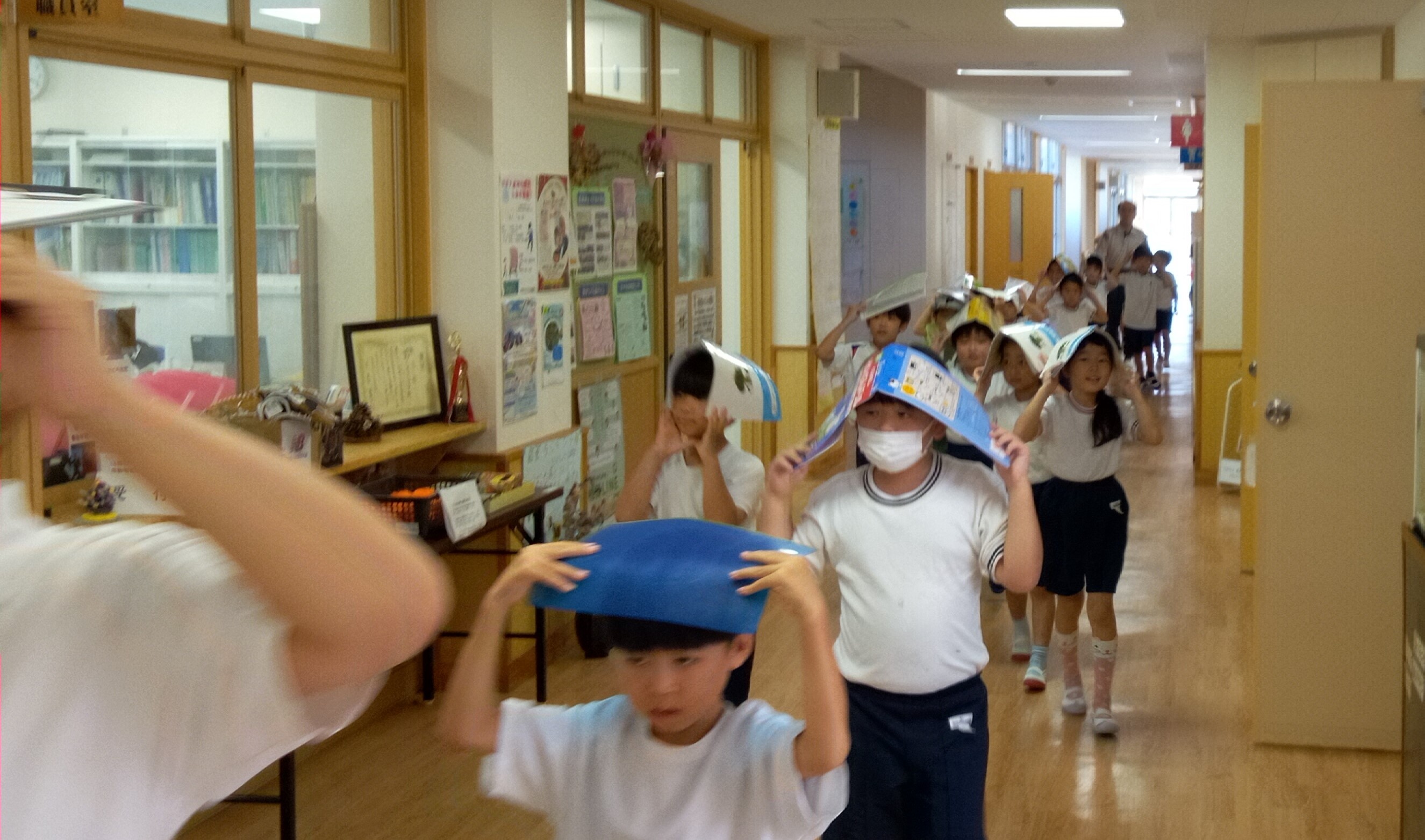 切串小学校で,全校生徒が参加した避難訓練と防災研修を行いました。