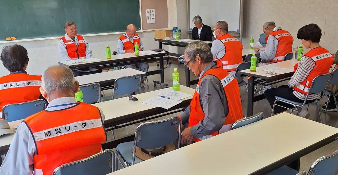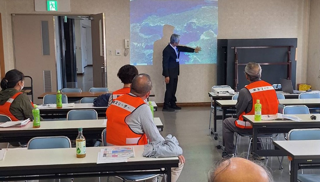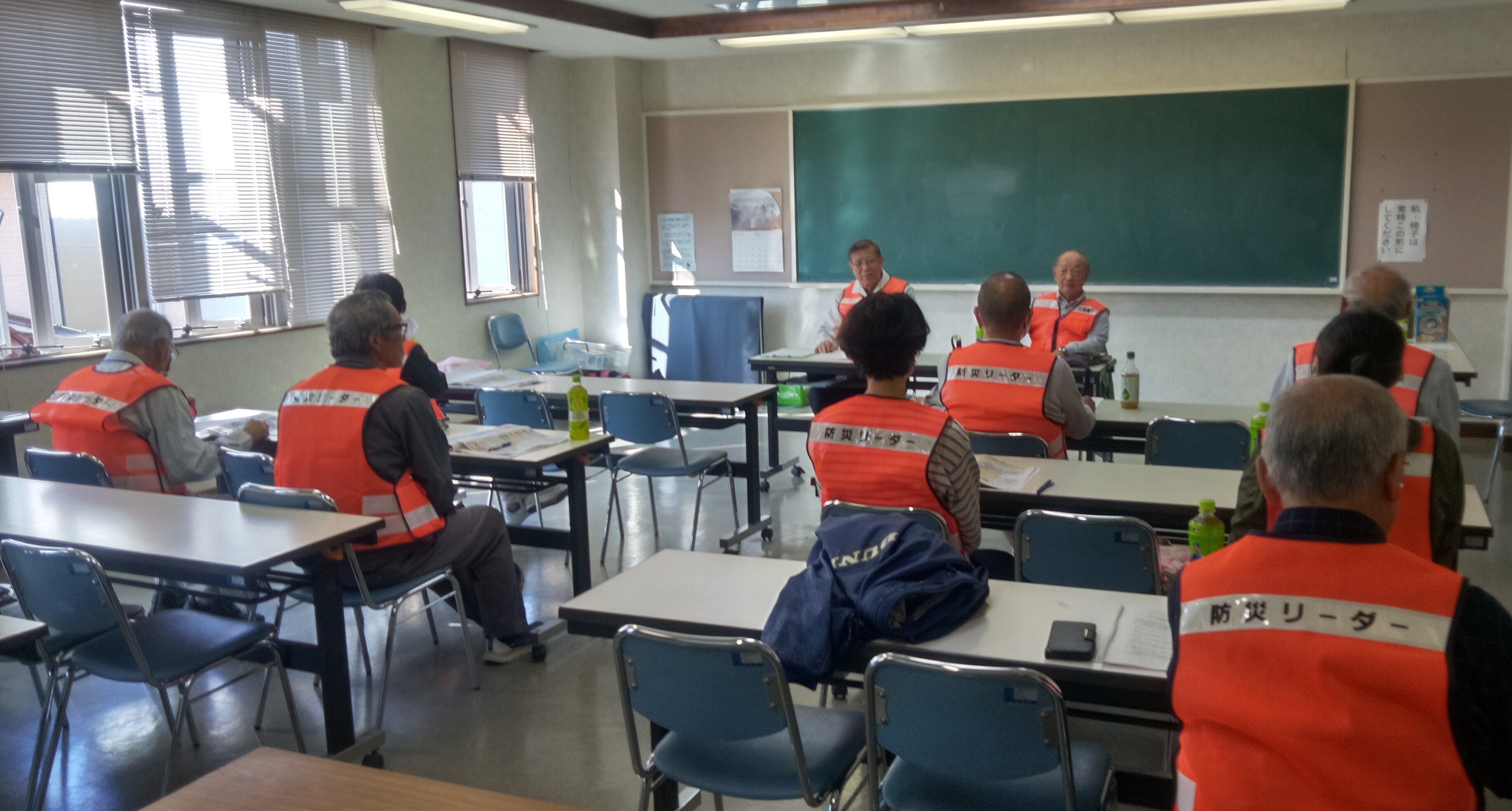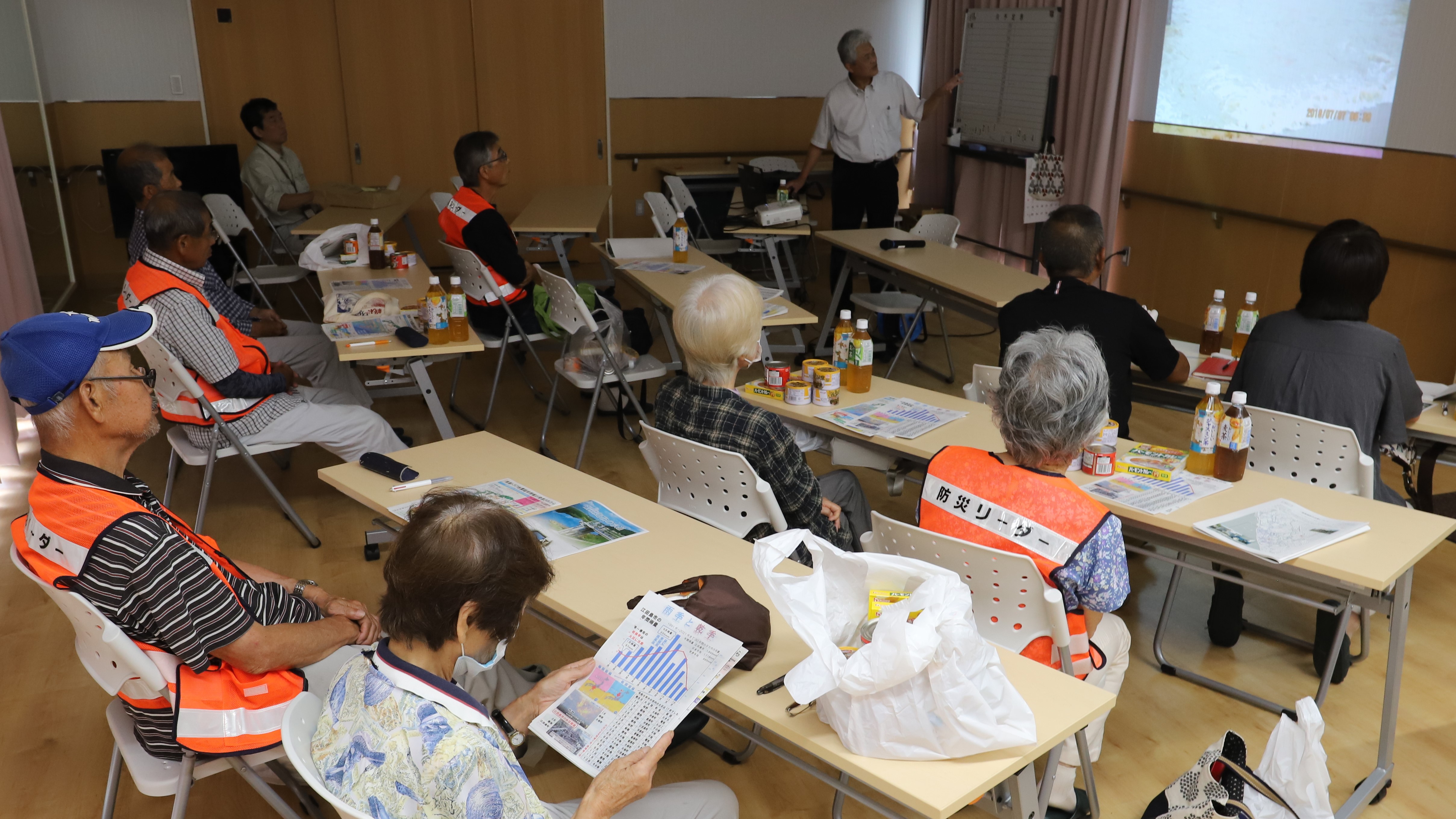 地域防災リーダーによる防災研修では、南海トラフ臨時情報の発表や、家庭における防災対策などについて講話がありました。