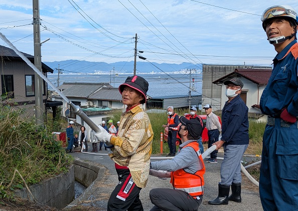 大須自主自治会は、災害から地域の人々の命を守る防災訓練を行いました。