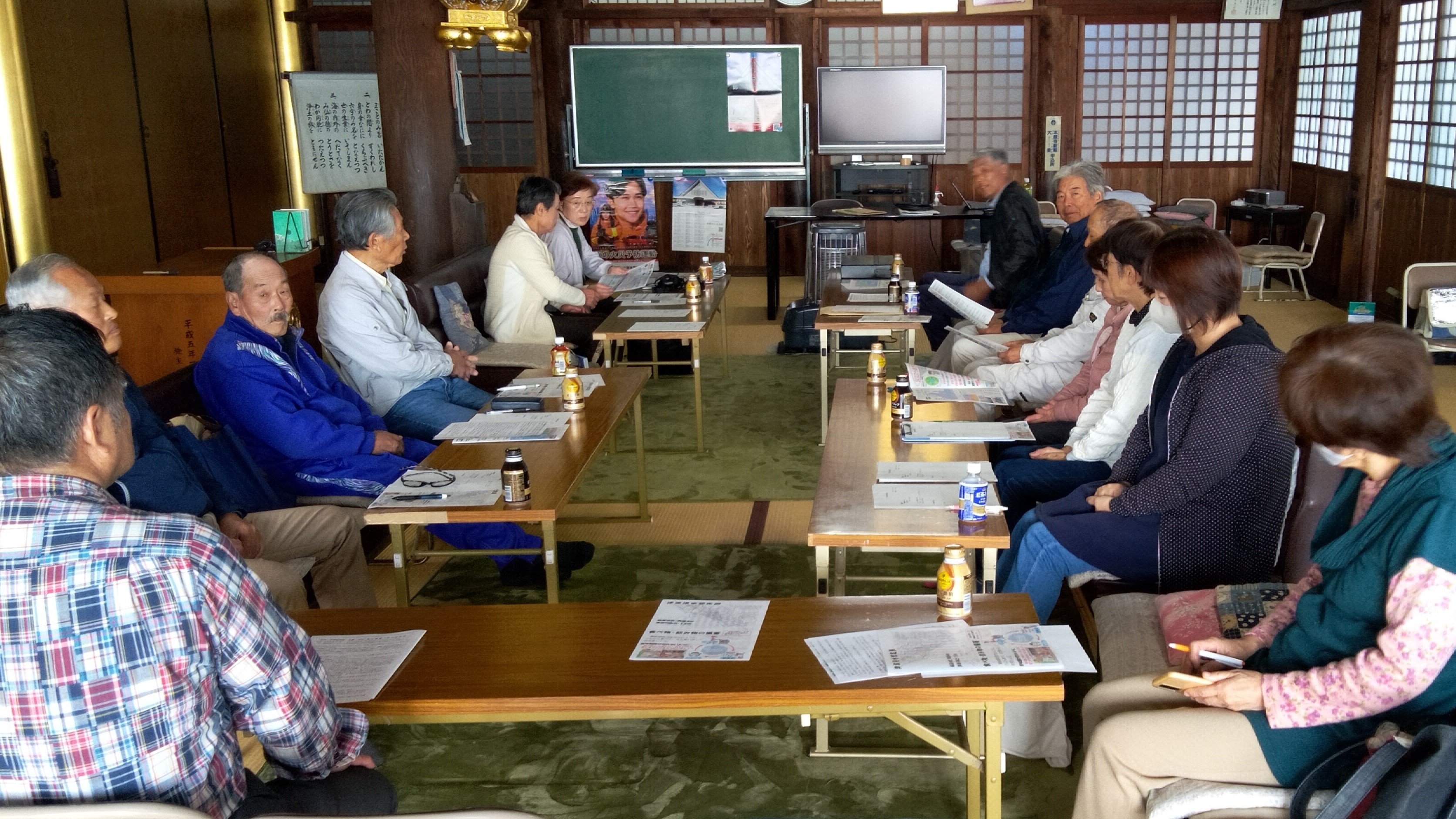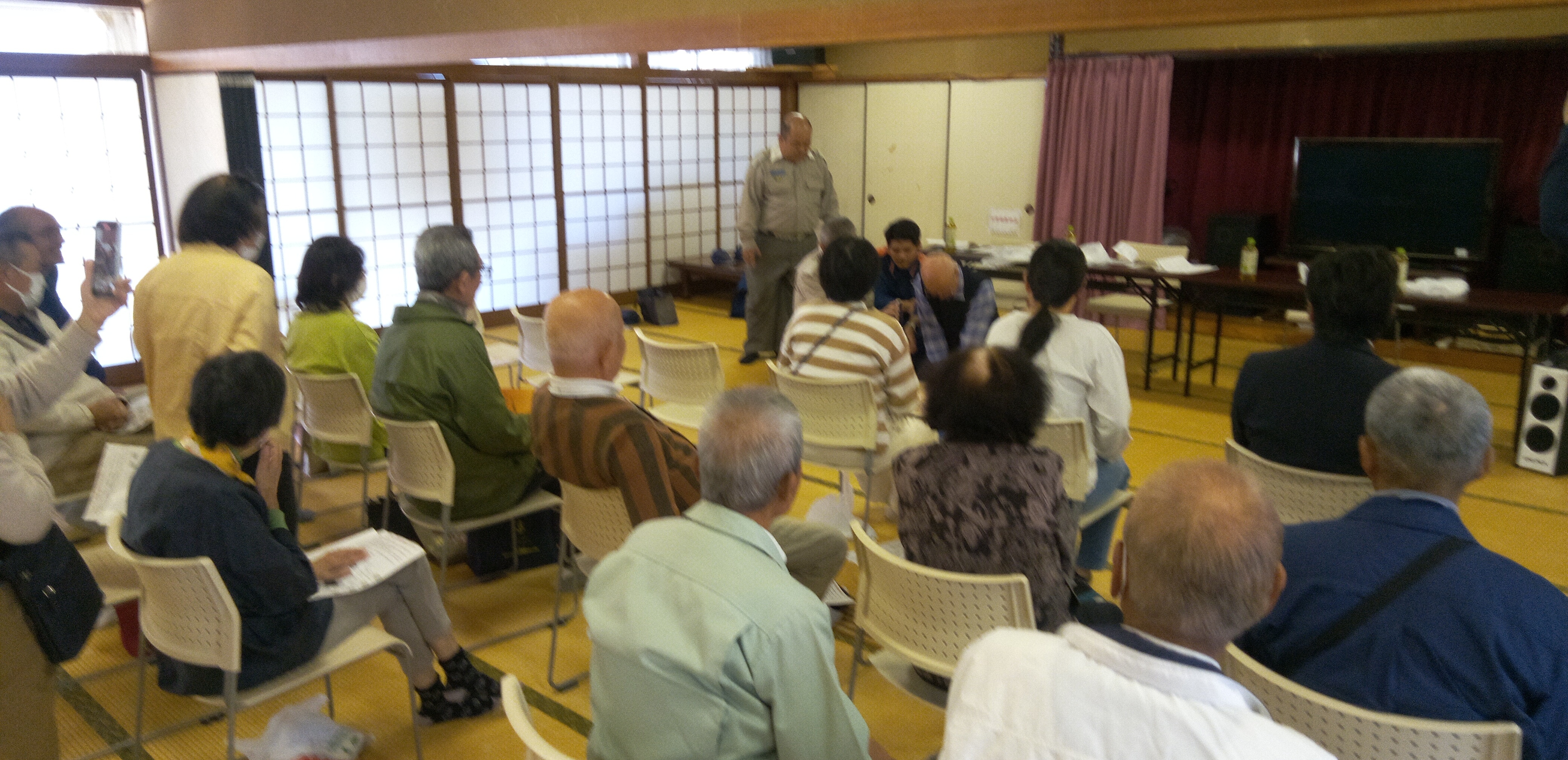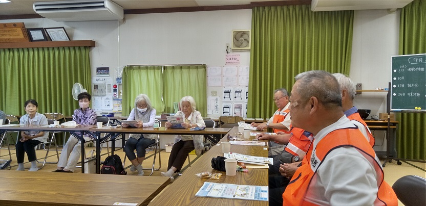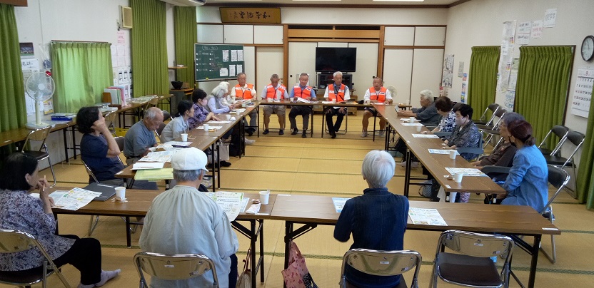 以前から、市社会福祉課と取り組んでいた「災害時に一人では避難することが困難な方」についての個別避難計画の策定について、地区の高齢者等と取り組み方について説明とQ&Aを行い、様々な問題への対策を考えながら、まずはいざという時に命を守る声掛けができる地域の関係づくりから、地域全体で取り組んでいくこととしました。