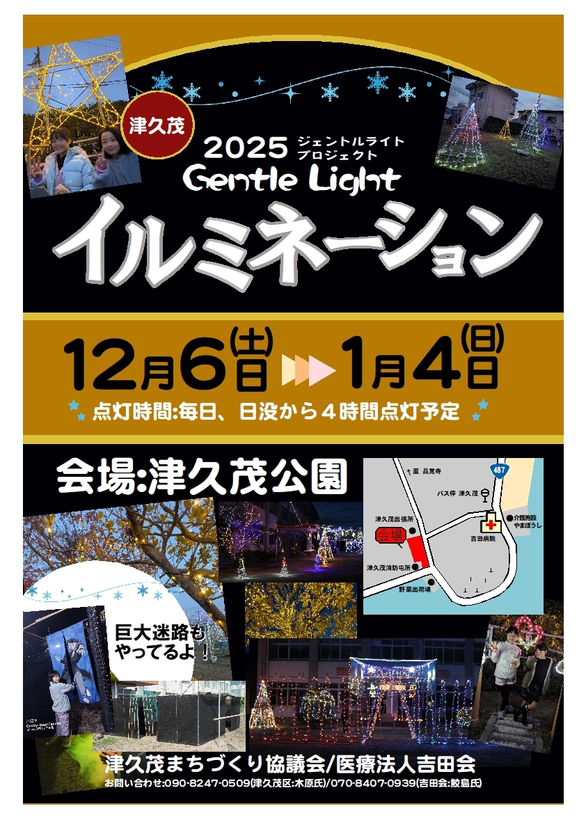 2025津久茂ジェントルライトプロジェクト(イルミネーション) | 12月6日(土)~1月4日(日) ※日没から約4時間点灯 |