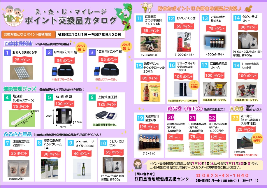・令和7年10月からのえ・た・じ・マイレージポイント交換品一覧表(ここからダウンロードできます)