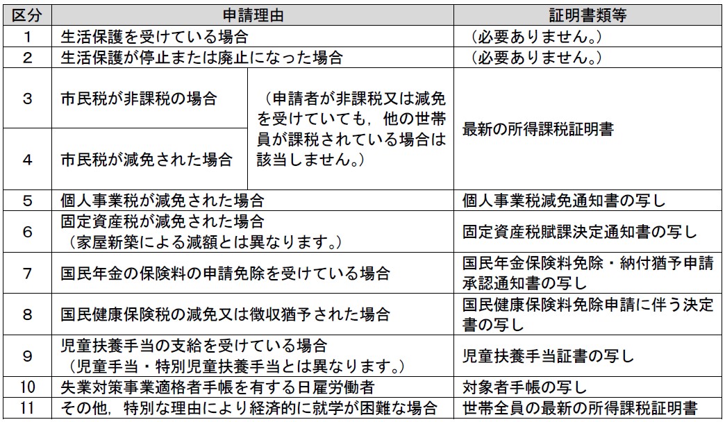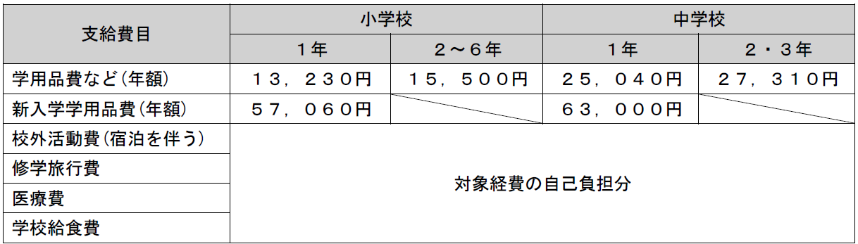 ※生活保護世帯の方は、医療費・修学旅行費のみ支給します。