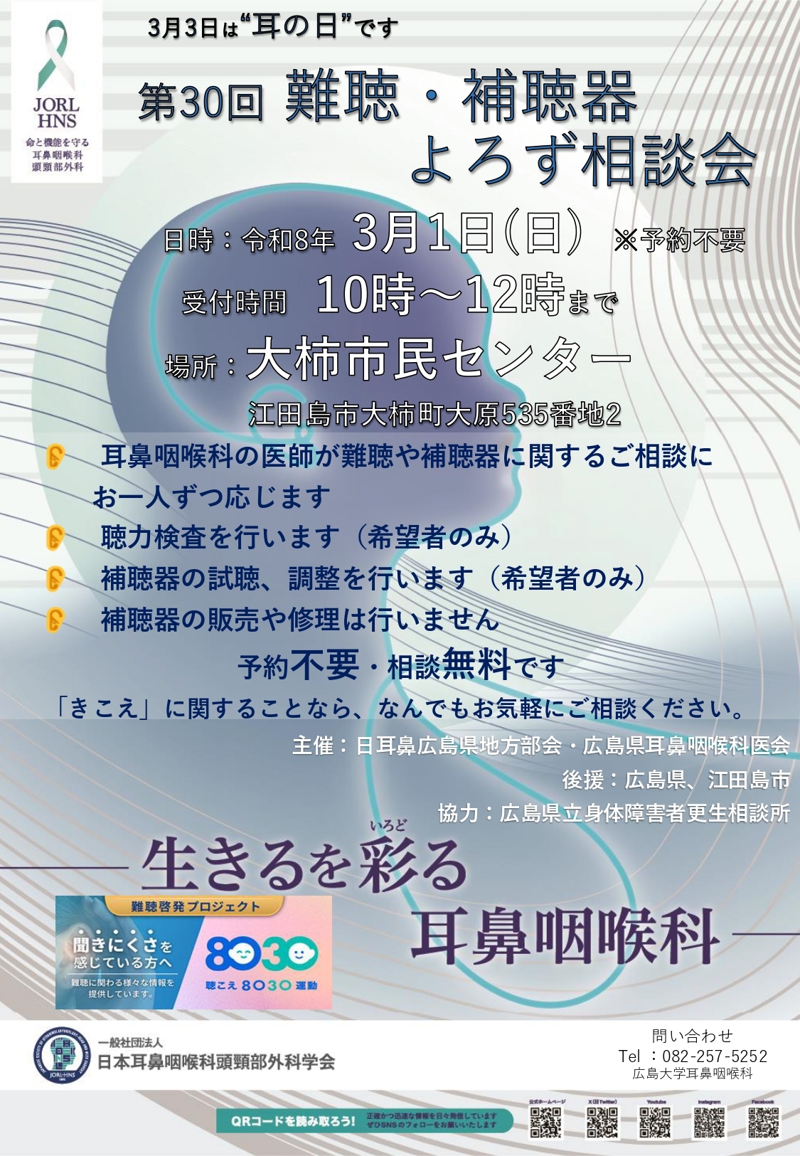 | 問い合わせ先 | 日耳鼻広島県地方部会(広島大学耳鼻咽喉科内)