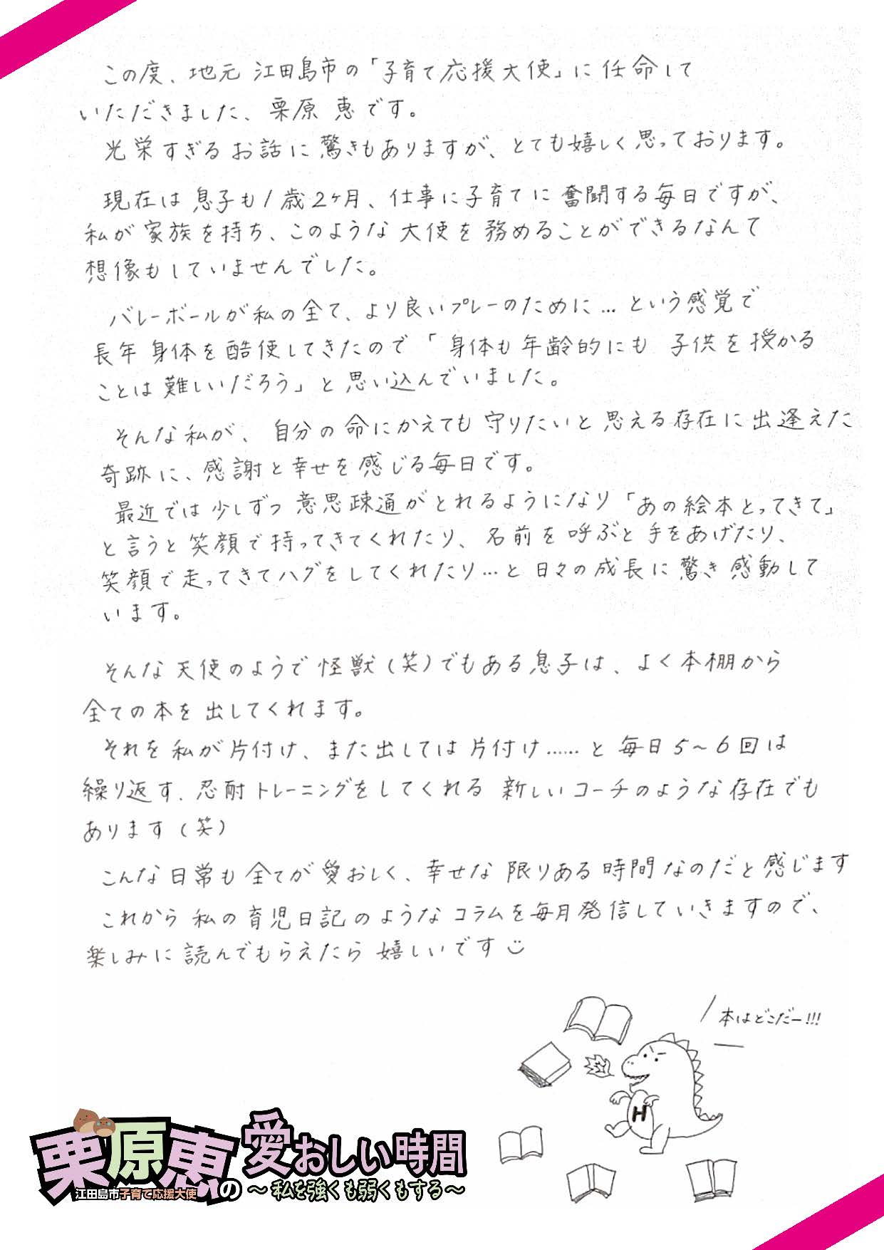 これから私の育児日記のようなコラムを毎月発信していきますので、楽しみに読んでもらえたら嬉しいです。