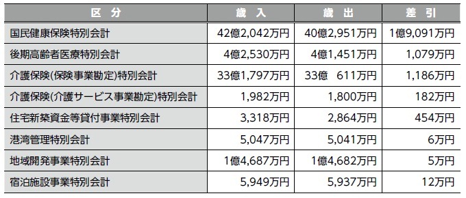 特別会計は,特定の事業を行う場合に一般会計と区分して経理を行う会計で,国民健康保険特別会計のように法律で義務付けられているものや,条例で設置されるものなど8会計があります。特別会計の決算状況は次のとおりです。