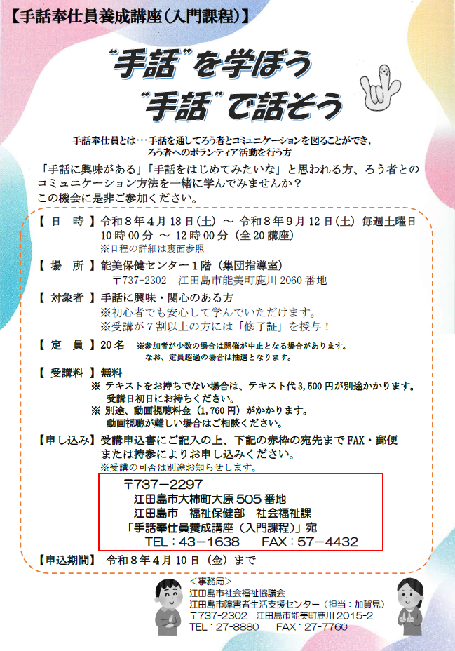 「手話に興味がある」「手話をはじめてみたいな」と思われる方、手話を必要とする聴覚障がい者とのコミュニケーション方法を一緒に学んでみませんか?
