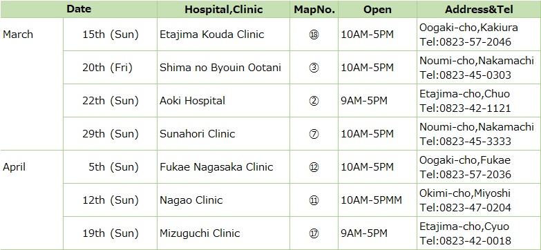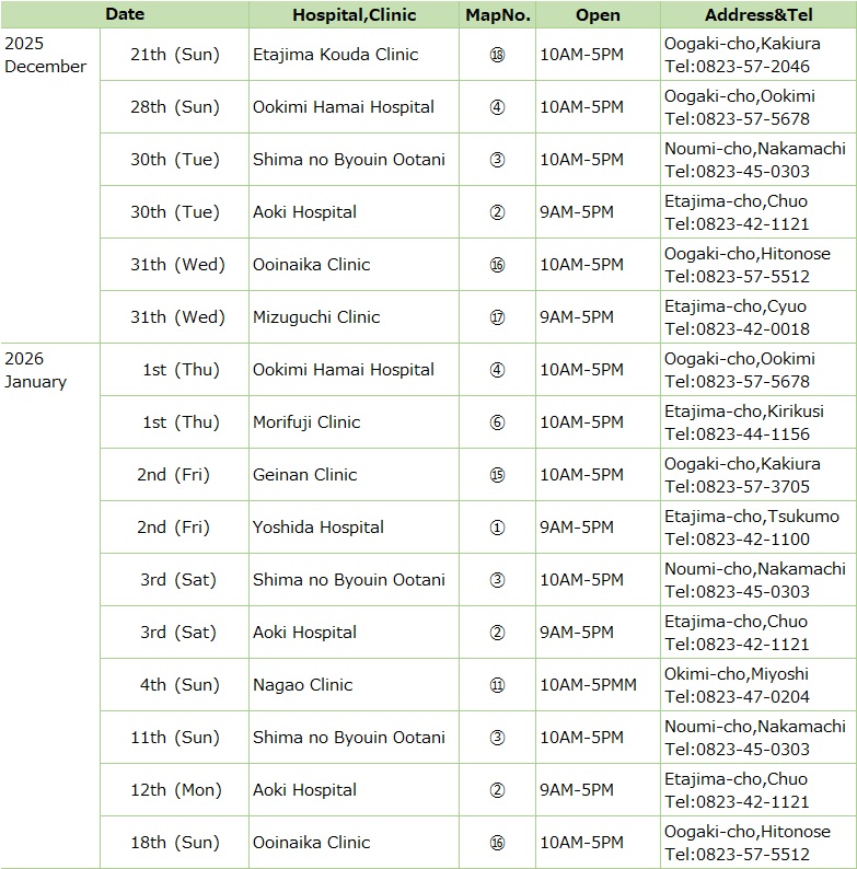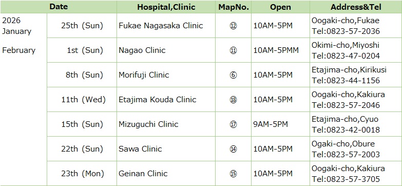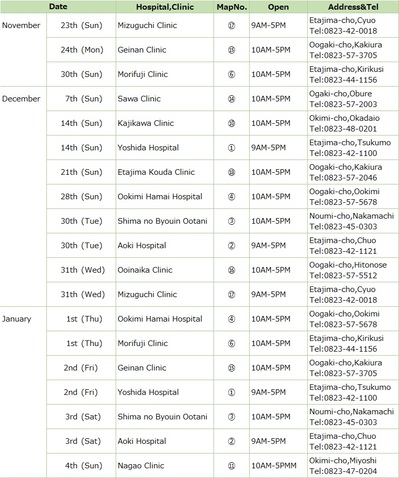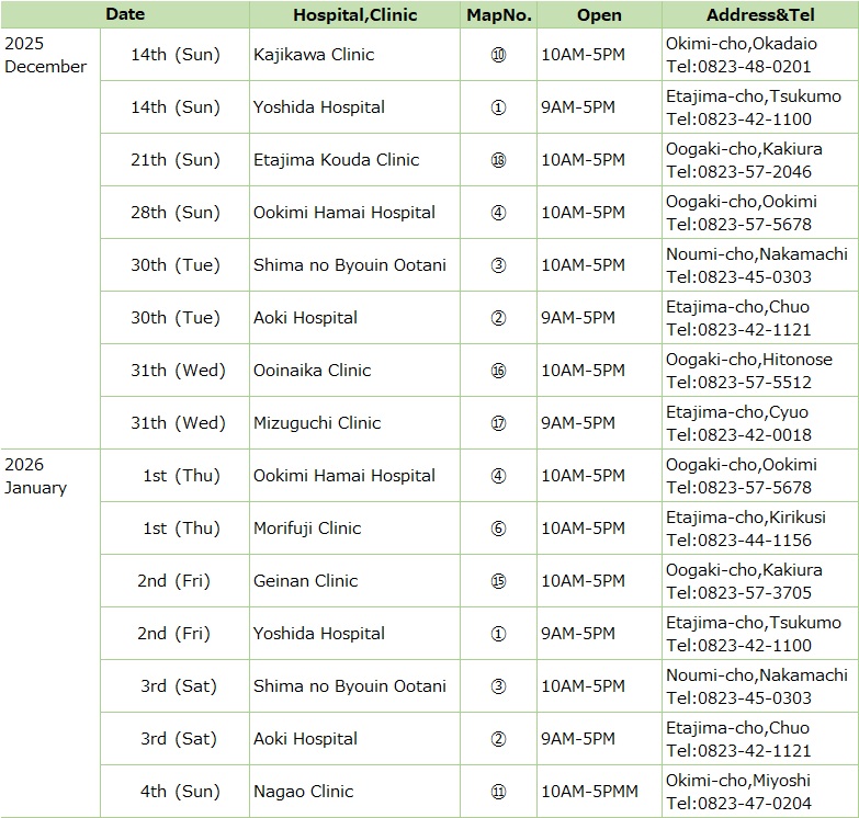 If you have a high temperature, diarrhea, vomiting, You can go to the hospital in the list.