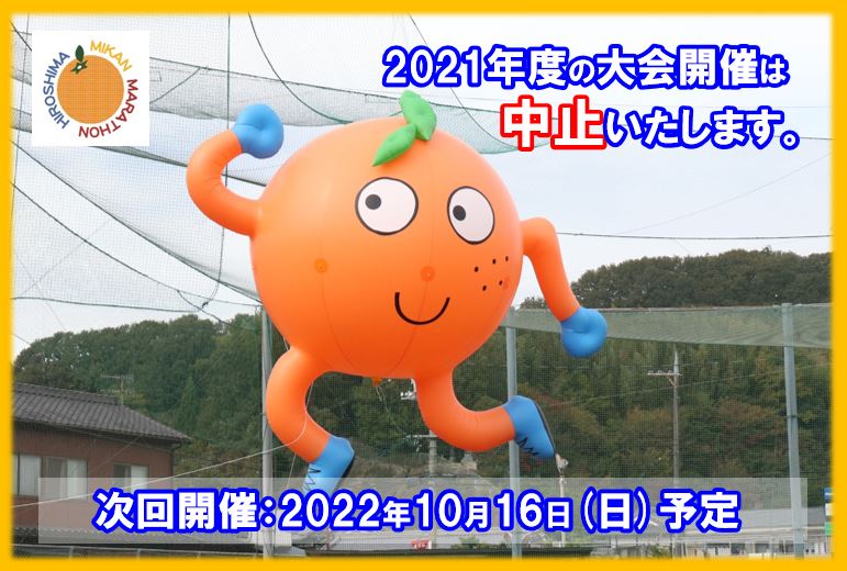 大会を心待ちにされていた皆様におかれましては,お詫び申し上げますとともに,ご理解いただきますようお願いします。来年度の開催に向けて,努力してまいりますので,引き続き「ヒロシマMIKANマラソン」をよろしくお願いします。