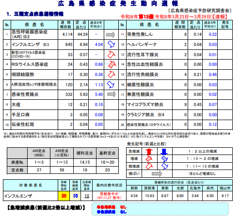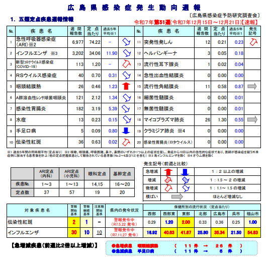 ・インフルエンザ警報(広島県感染症・疾病管理センター)→R7.11.27発令