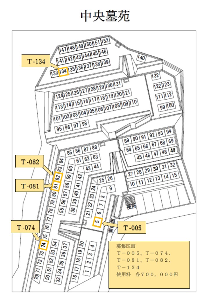 T-005、T-074、T-081、T-082、T-134 (詳細は墓苑内平面図でご確認ください) |