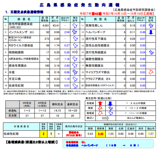 ・ 伝染性紅斑警報(広島県感染症・疾病管理センター)→R7.5.22発令