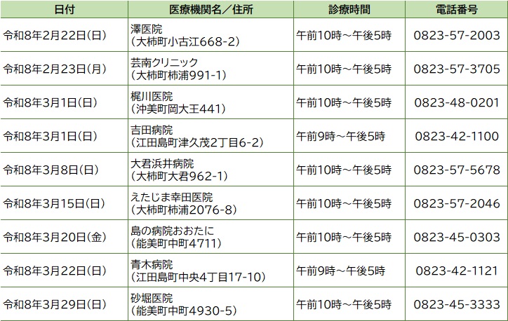 2月・3月の当番医 R8.2.17更新